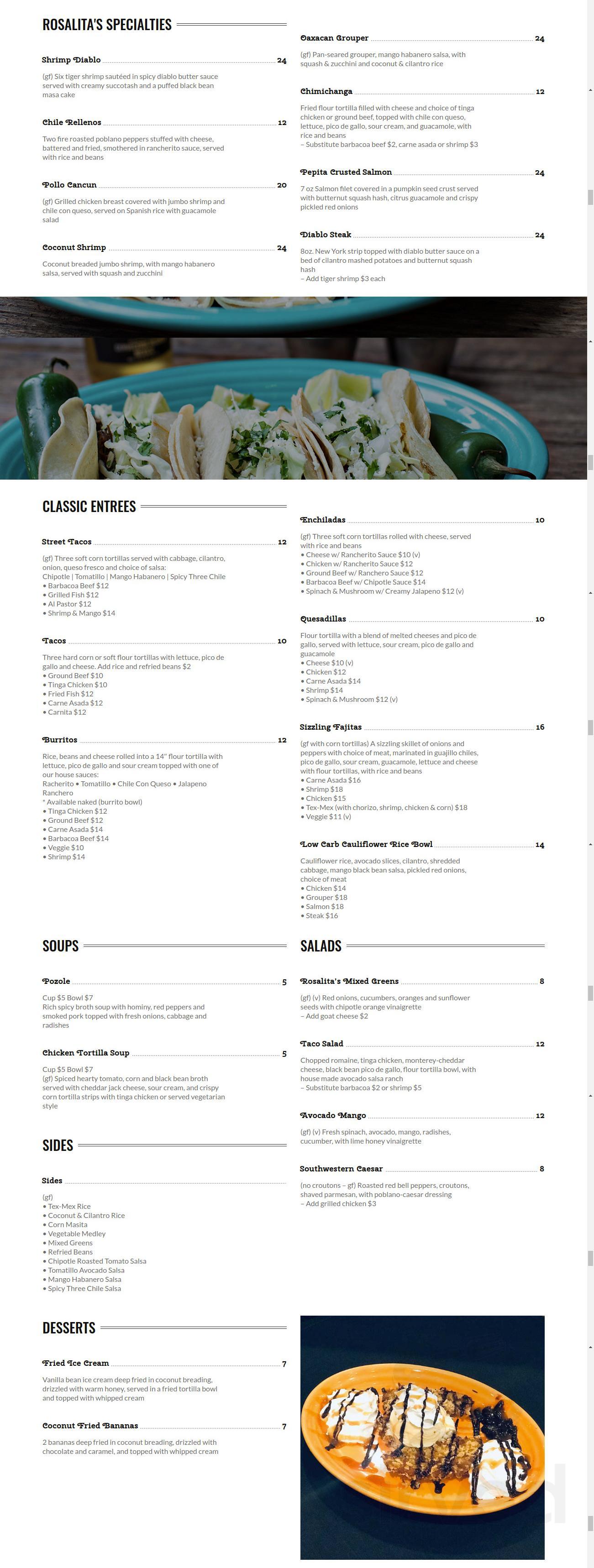 Louis, des peres, mo and sanibel, florida. Rosalita's offers a full menu of both food and drinks. We have a full array of classic mexican dishes and more modern specialties, including our cadillac.